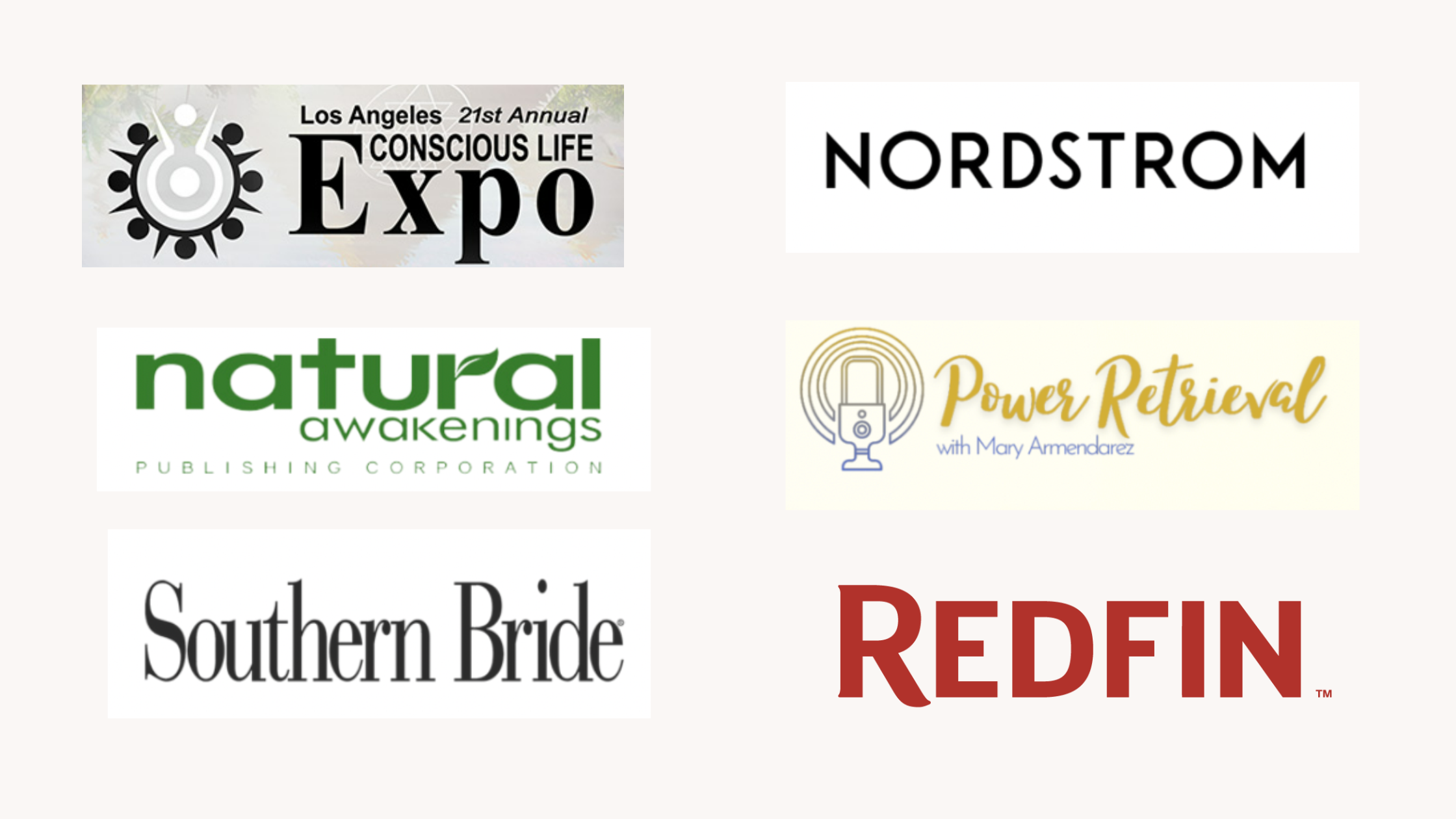 Mary Armendarez has been interviewed and featured in many different podcast, articles from the Redfin, Natural Awakenings, Nordstrom, Conscious Life Expo, Southern Bride and New Living Expo.
